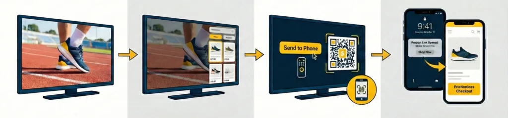 4. Conversion: The viewer scans the QR code or clicks using their remote, instantly opening the product link on their mobile device, where they’re already logged in and primed to purchase.This flow addresses one of television advertising’s longest-standing challenges: attribution. Instead of inferring impact through lift studies or delayed conversions, advertisers can now track direct engagement and clicks, connecting connected TV ads to measurable outcomes.